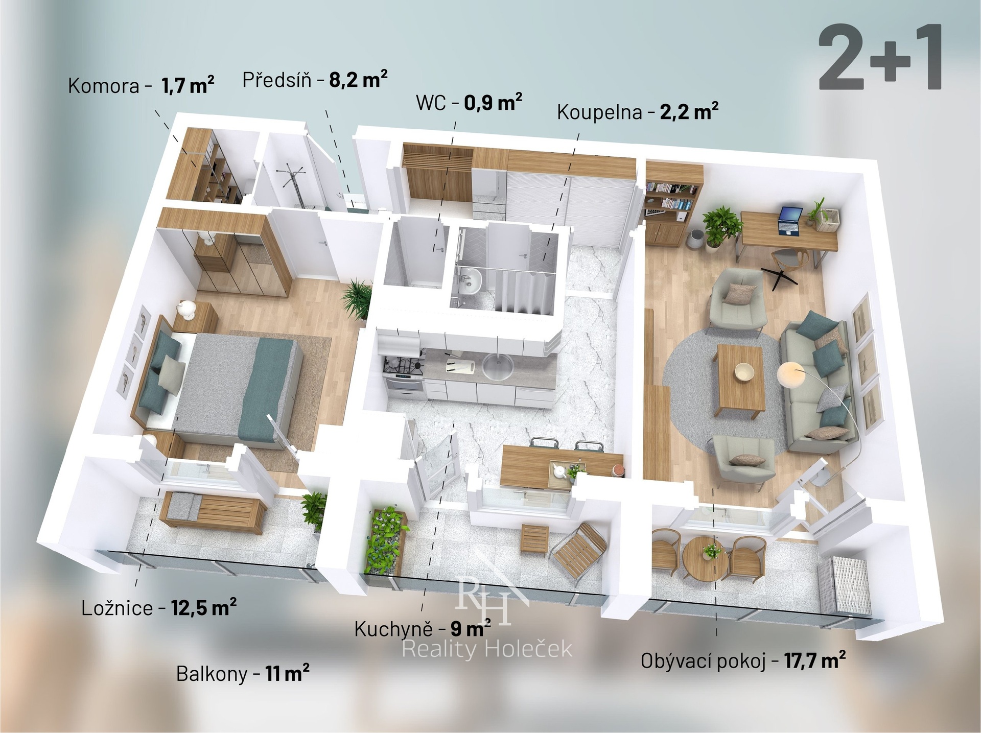 2+1 se třemi balkony – každý pokoj má svůj
