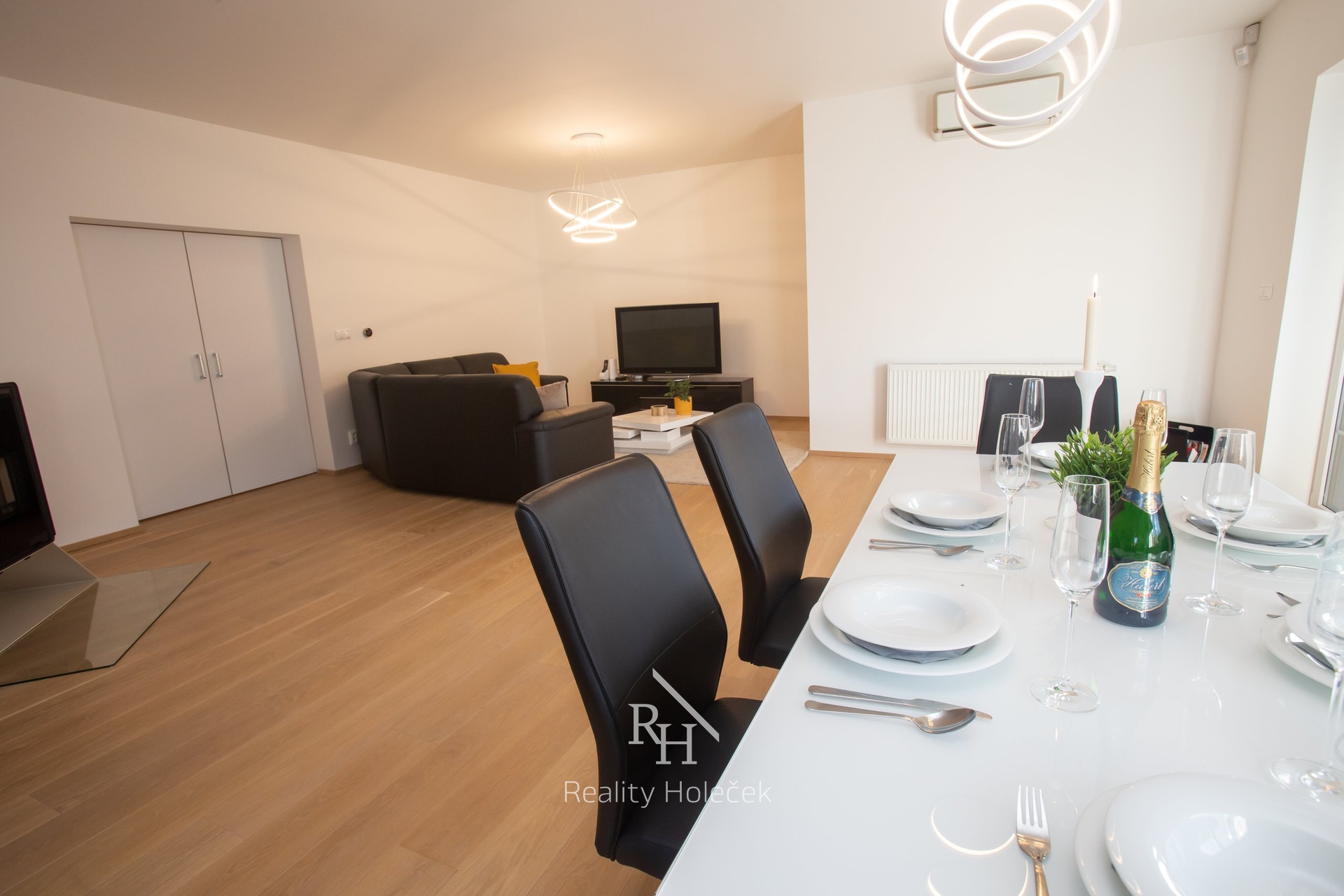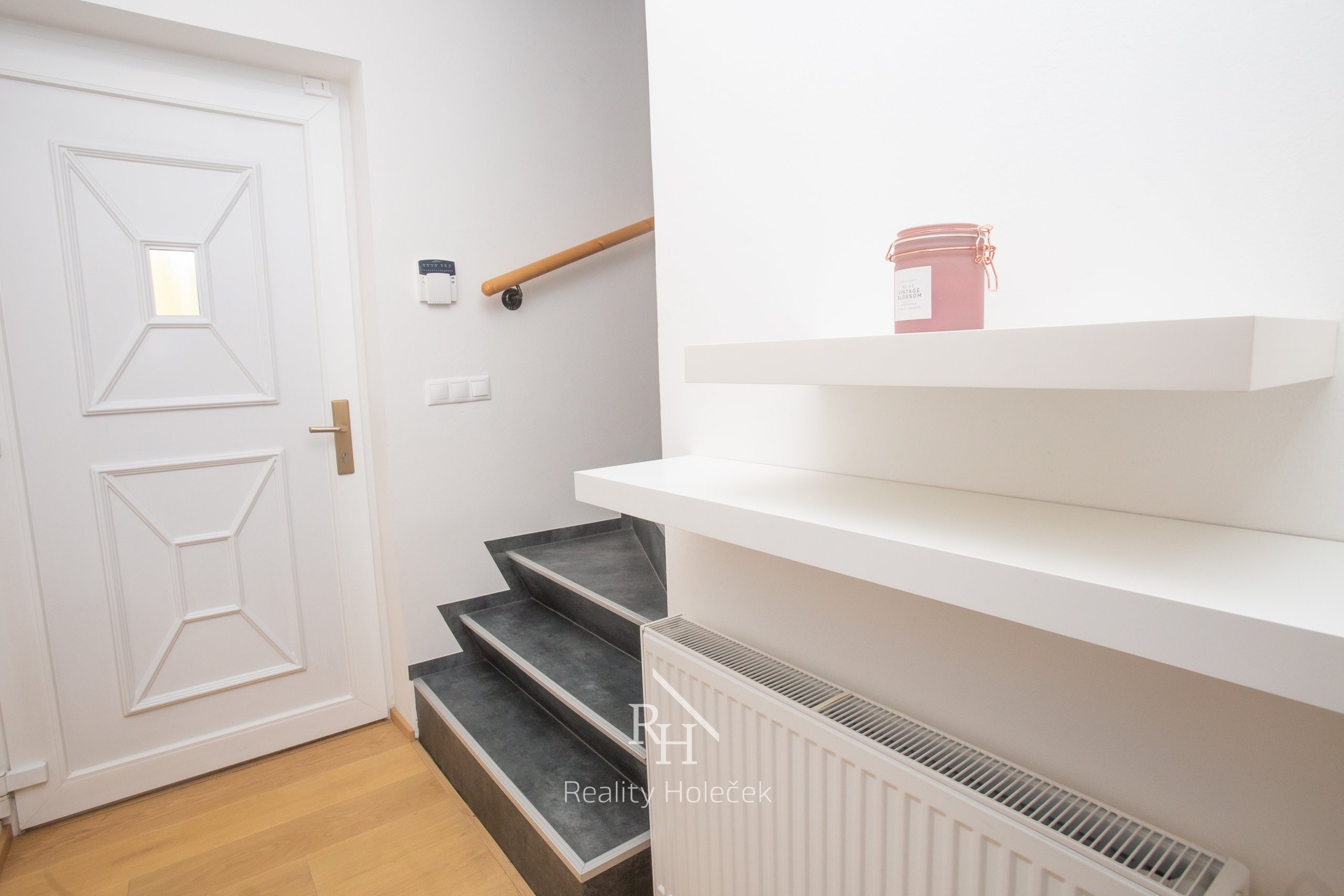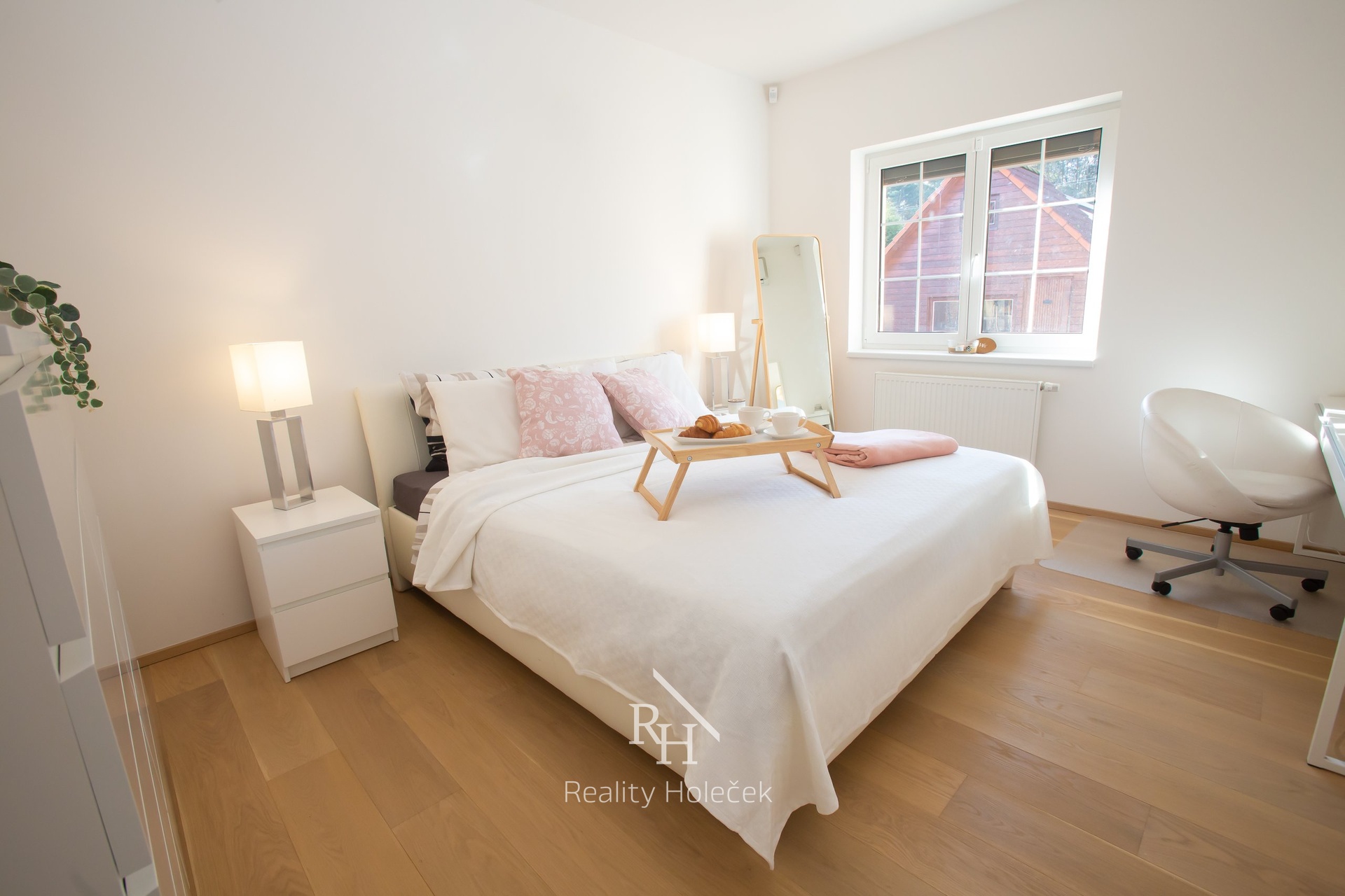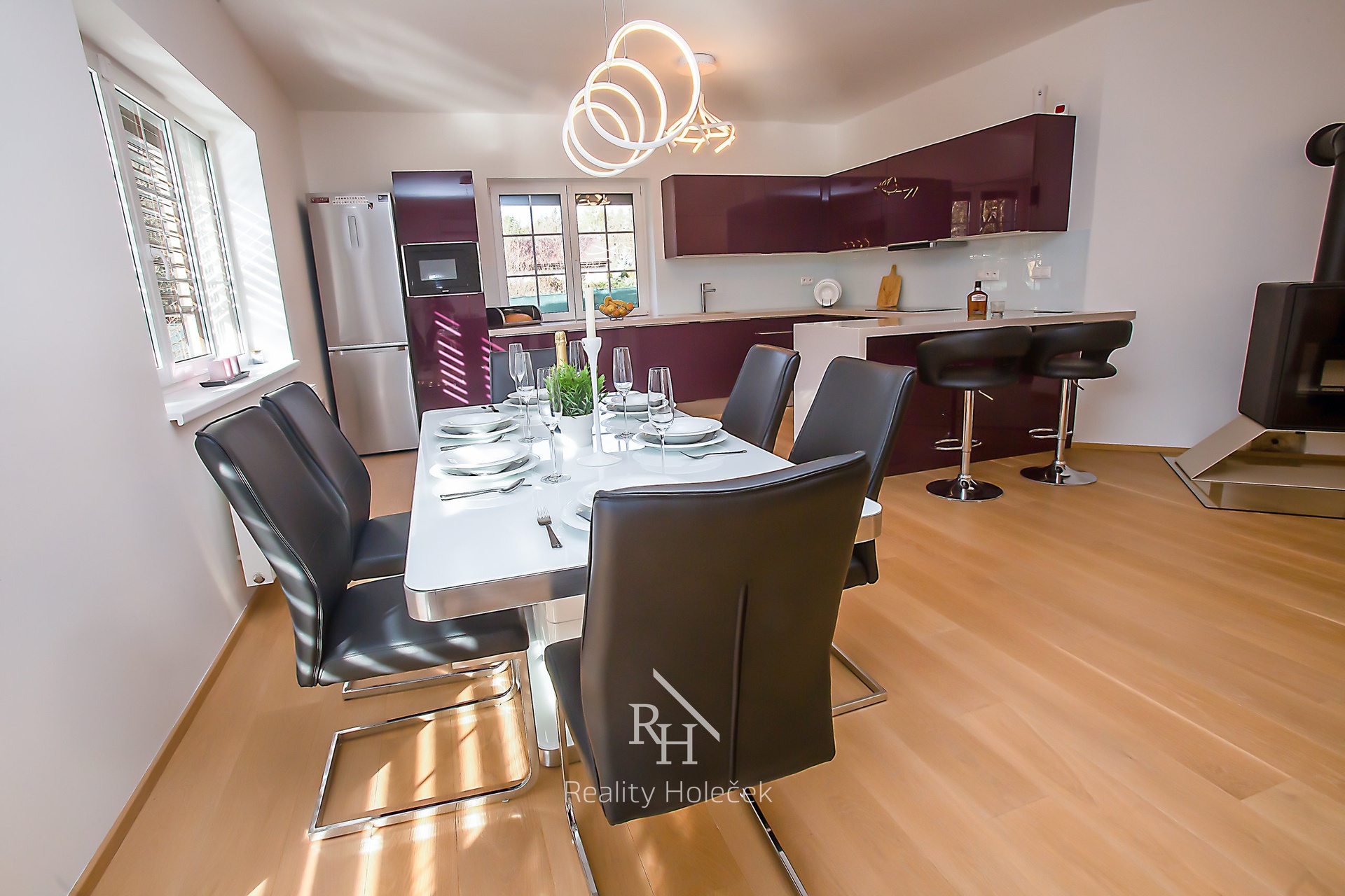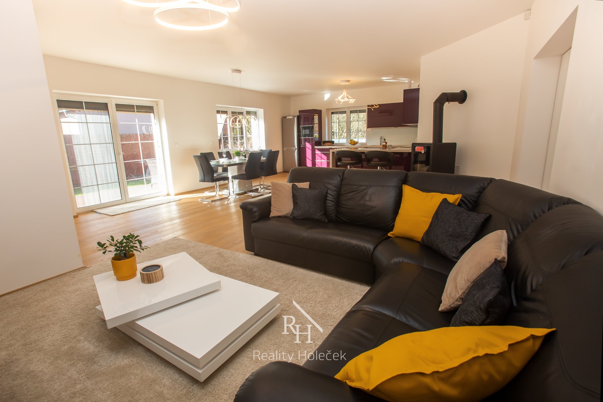O teplo v domě se postará kondenzační plynový kotel Vailant. V chodbě, koupelně a obývacím pokoji s kuchyní je rozvedeno podlahové topení. Jak je již uvedeno výše, přitopit si můžete také v úplně novém krbu. Další vychytávkou v domě jsou venkovní okenní žaluzie od společnosti Lomax ovládané přes mobilní aplikaci. Váš komfort během horkých letních dní zvýší dvě klimatizační jednotky, jedna pro obývací pokoj a druhá pro ložnici. Dalším bonusem domu je pak prostorná garáž (39m2) pro dva vozy. Samozřejmostí je pojezdová brána a sekční garážová vrata na dálkové ovládání. O Vaše bezpečí se postará moderní zabezpečovací systém od společnosti iGet a kamerový systém monitorující okolí domu, vše ovládané jednoduše přes aplikace v telefonu. Osvětlení na toaletě, chodbě, předsíni a v ložnici je značky Philips Hue.