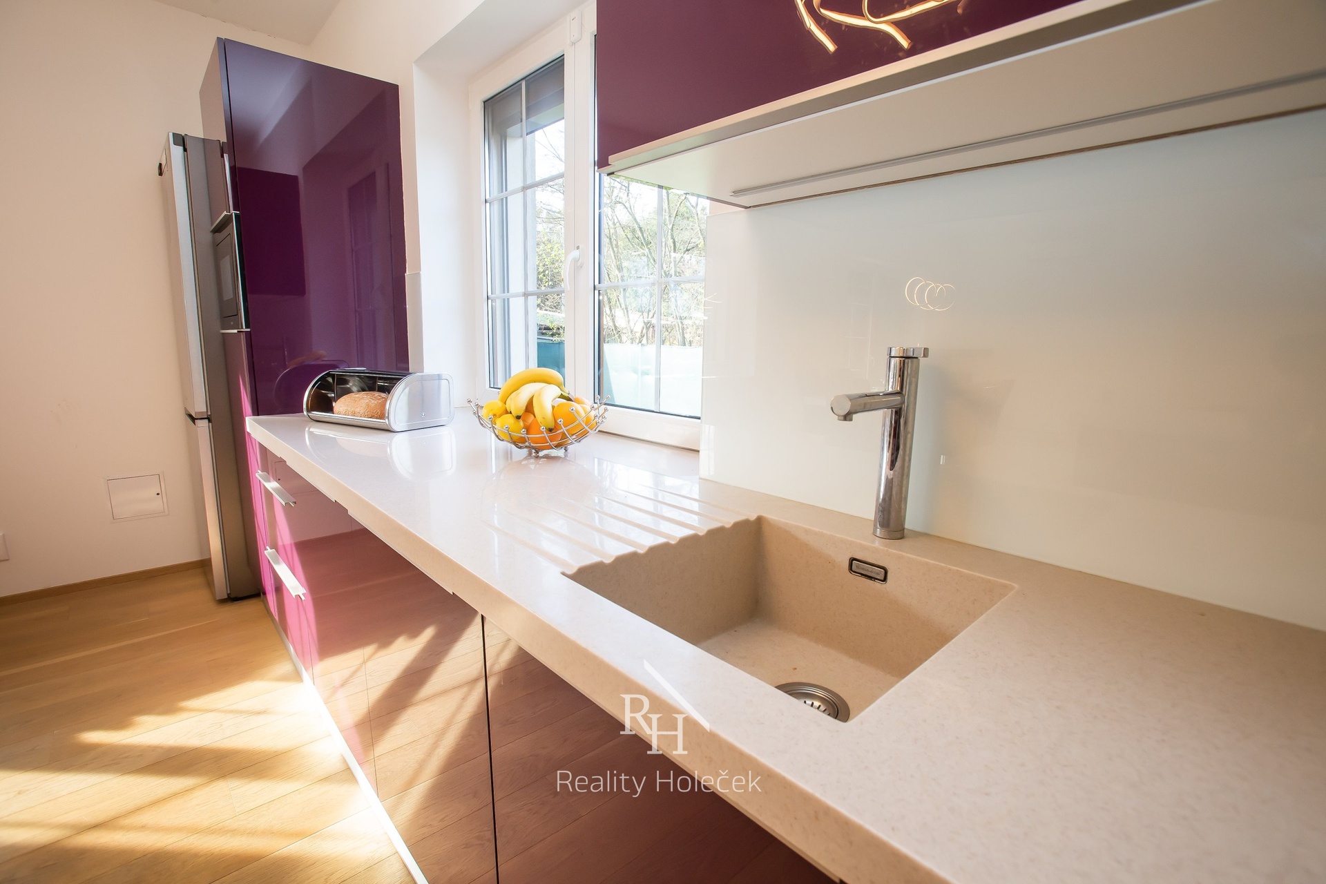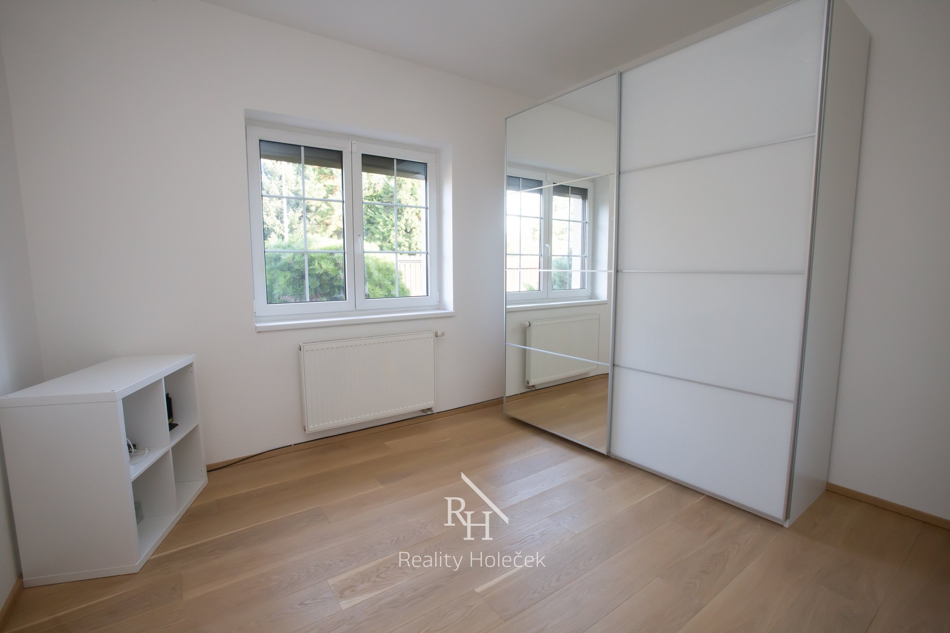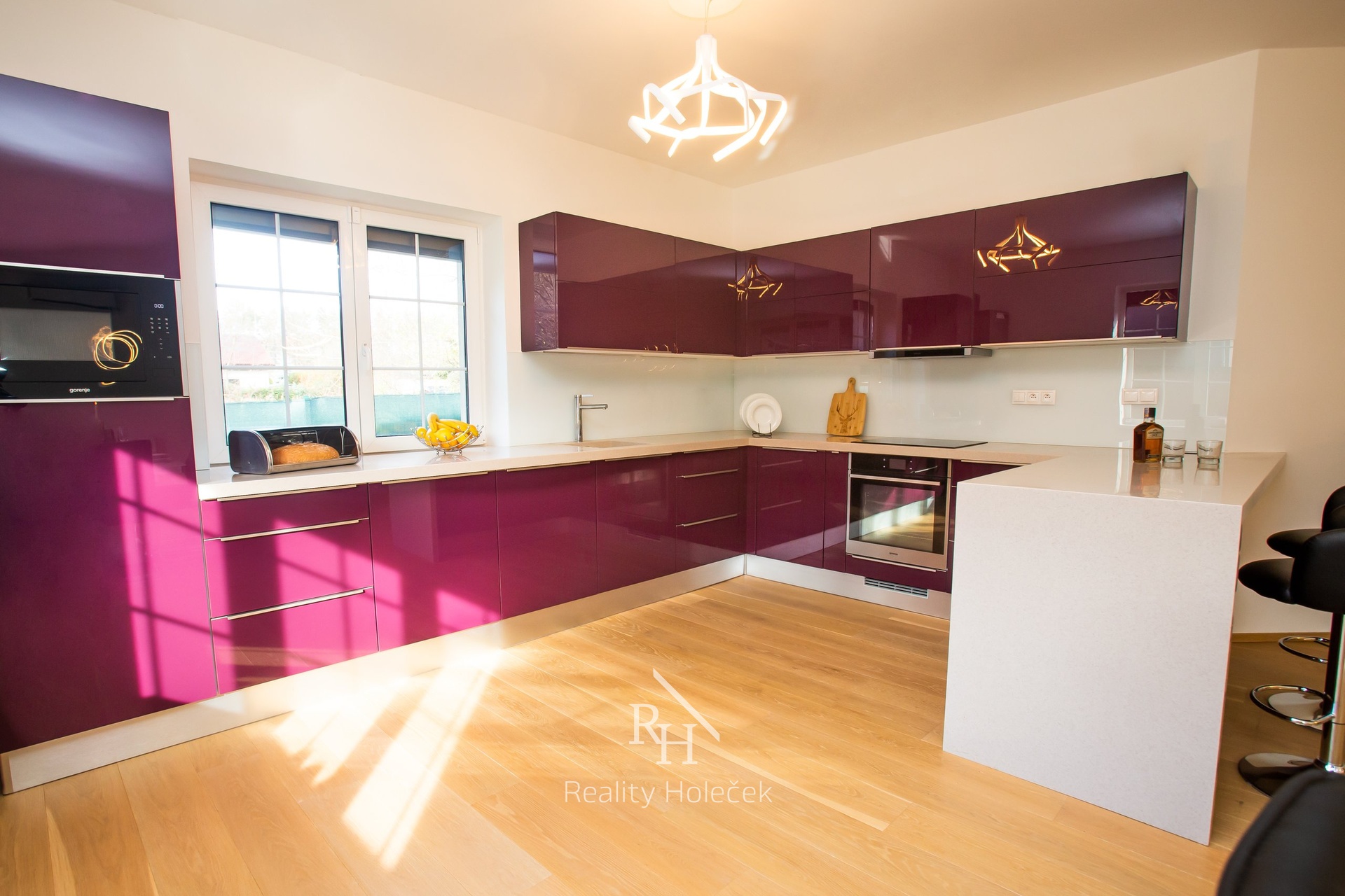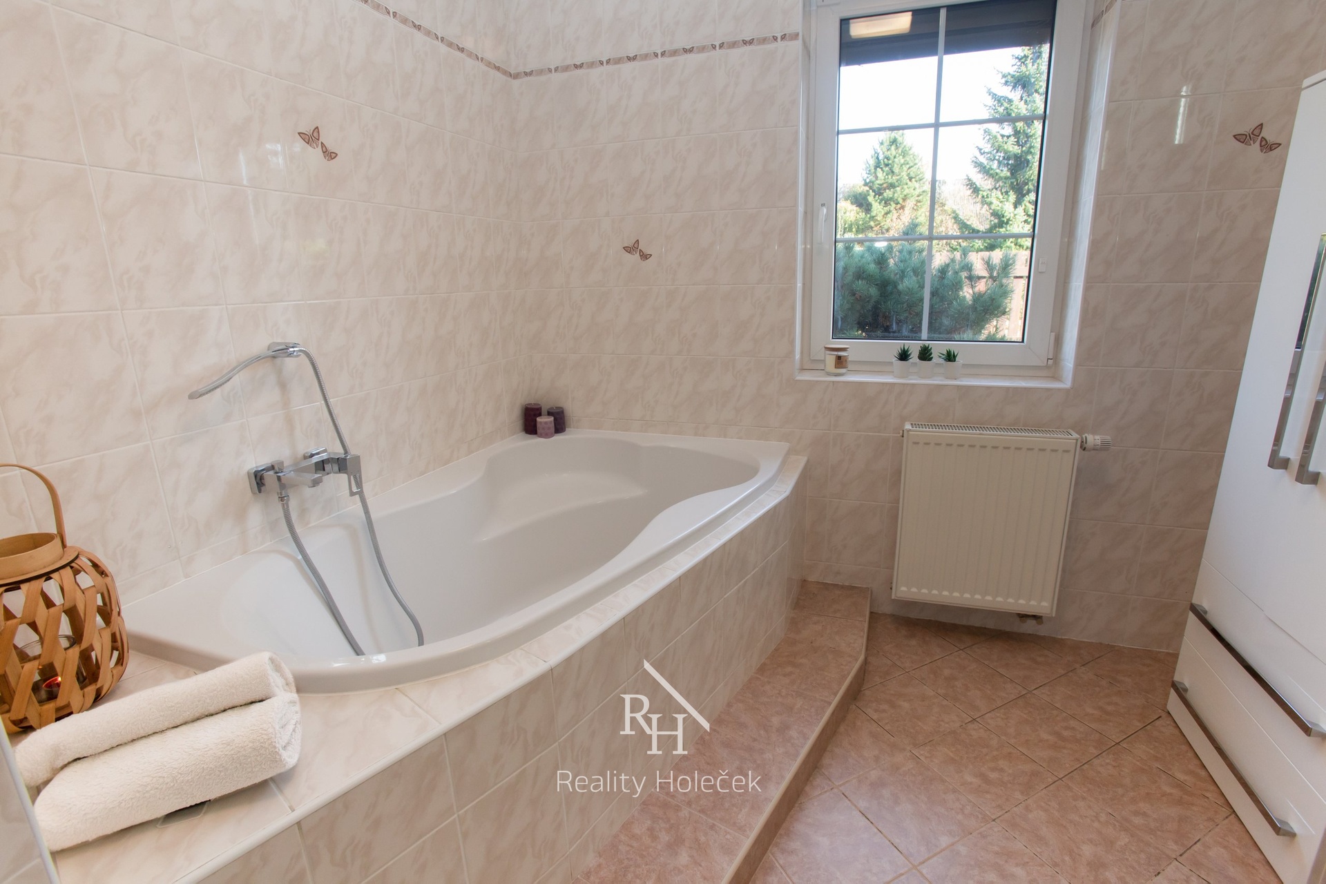 Jediný svého druhu, tak by se dal nazvat tento dům v Kladně Rozdělově v blízkosti lesa. Jiný podobný dům momentálně v nabídce na Kladně nenajdete. Tato nemovitost Vám poskytne na pozemku o velikosti 822m2 dostatek prostoru a soukromí. První podlaží o dispozici 4+kk prošlo v roce 2019 nákladnou a zdařilou rekonstrukcí. Prostornému obývacímu pokoji spojenému s kuchyní (57m2) dominuje moderní kuchyňská linka se špičkovými spotřebiči od společnosti Gorenje, s pracovní deskou z umělého kamene od společnosti Samsung a lednicí taktéž od Samsungu. Během zimních dní si zde můžete přitopit ve zcela nových krbových kamnech, které stále čekají na svůj první podpal. Dále zde nalezneme větší z ložnic (23m2), momentálně využívanou jako posilovnu. Dvě menší ložnice, každá o rozměru 13m2. Koupelna (8m2) se sprchovým koutem a vanou poskytne dostatek prostoru a pohodlí. K nadstandardu patří dubové dřevěné podlahy s jemnými pozlacenými třpytkami. Naprosto Vás okouzlí moderní interiérové dveře se skrytými zárubněmi od společnosti B-doors-invisidoors. Ve druhém podlaží na Vás čeká prostorný pokoj o rozměru 46m2 s koupelnou, toaletou a přípravou na menší kuchyňku. Dům je tak možné snadno využít jako dvougenerační nebo sem přesunout posilovnu z přízemí.