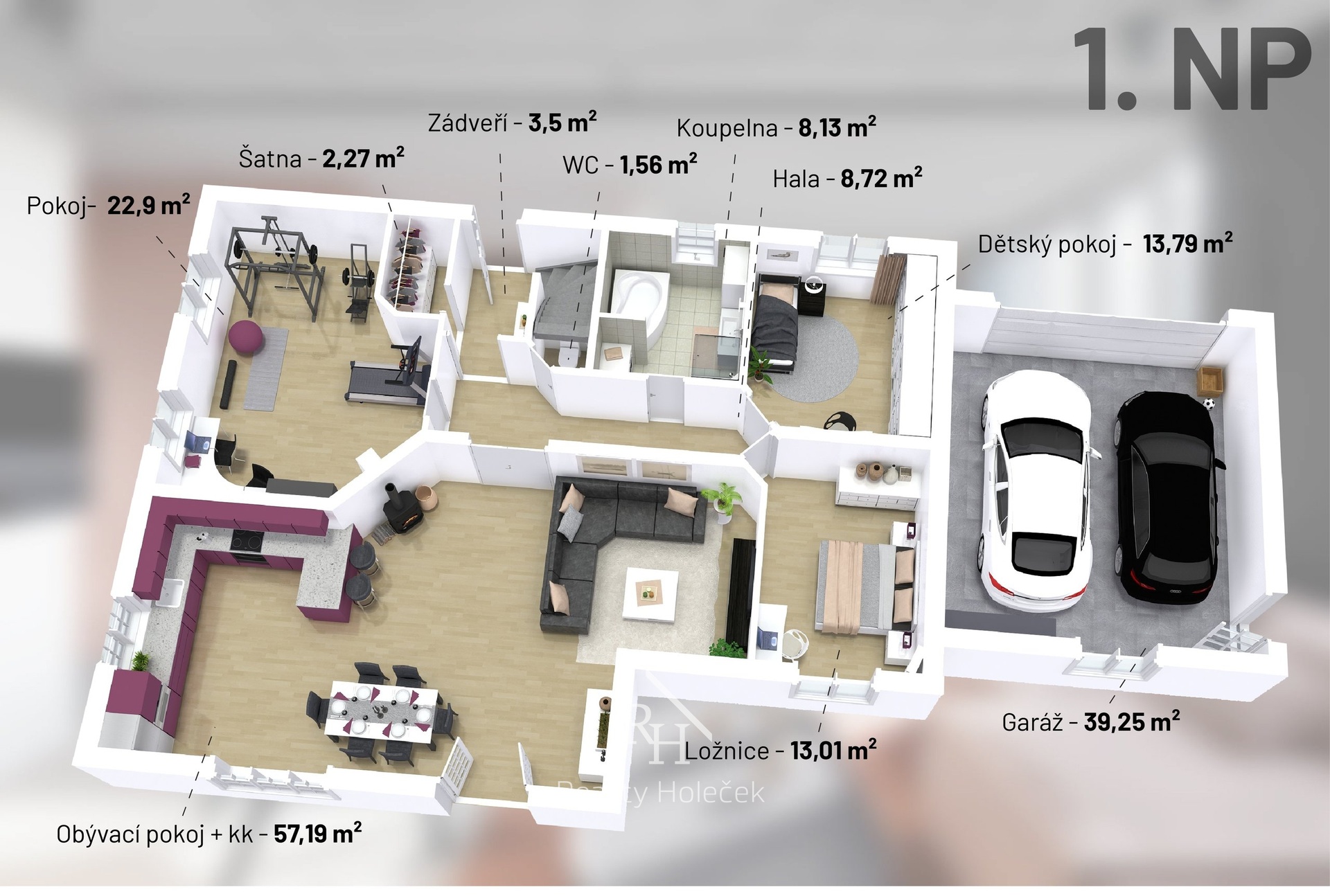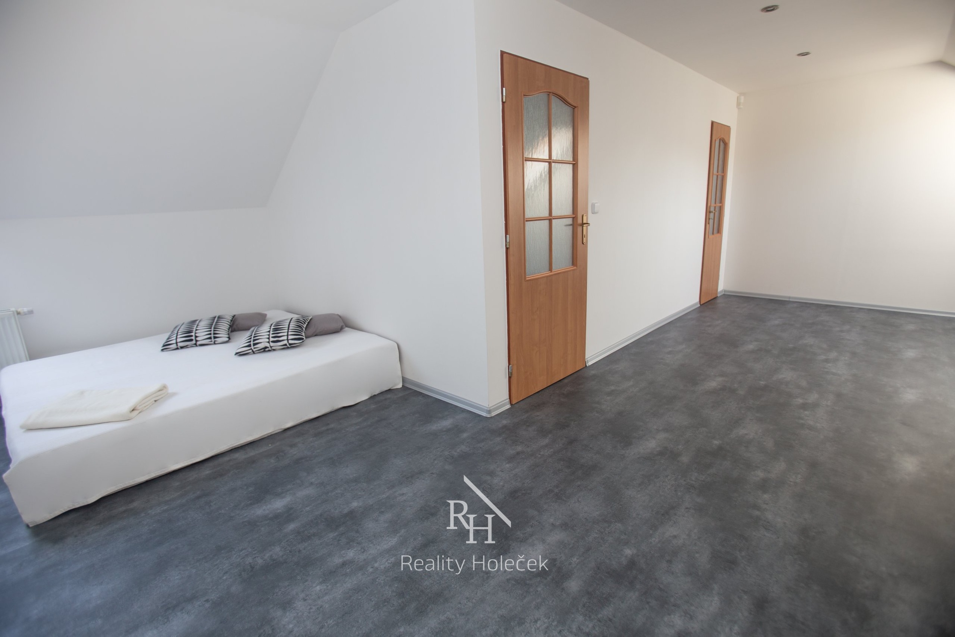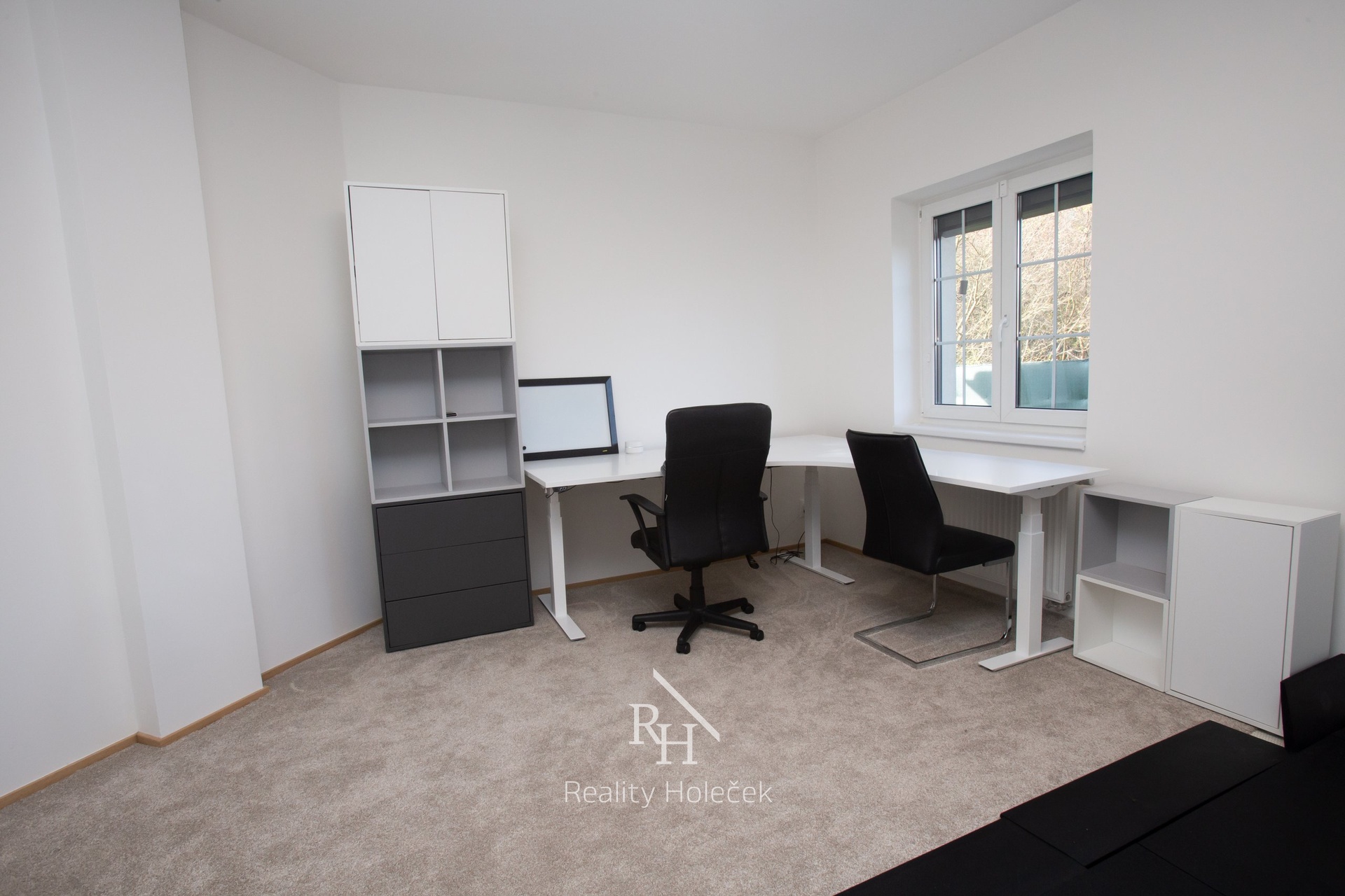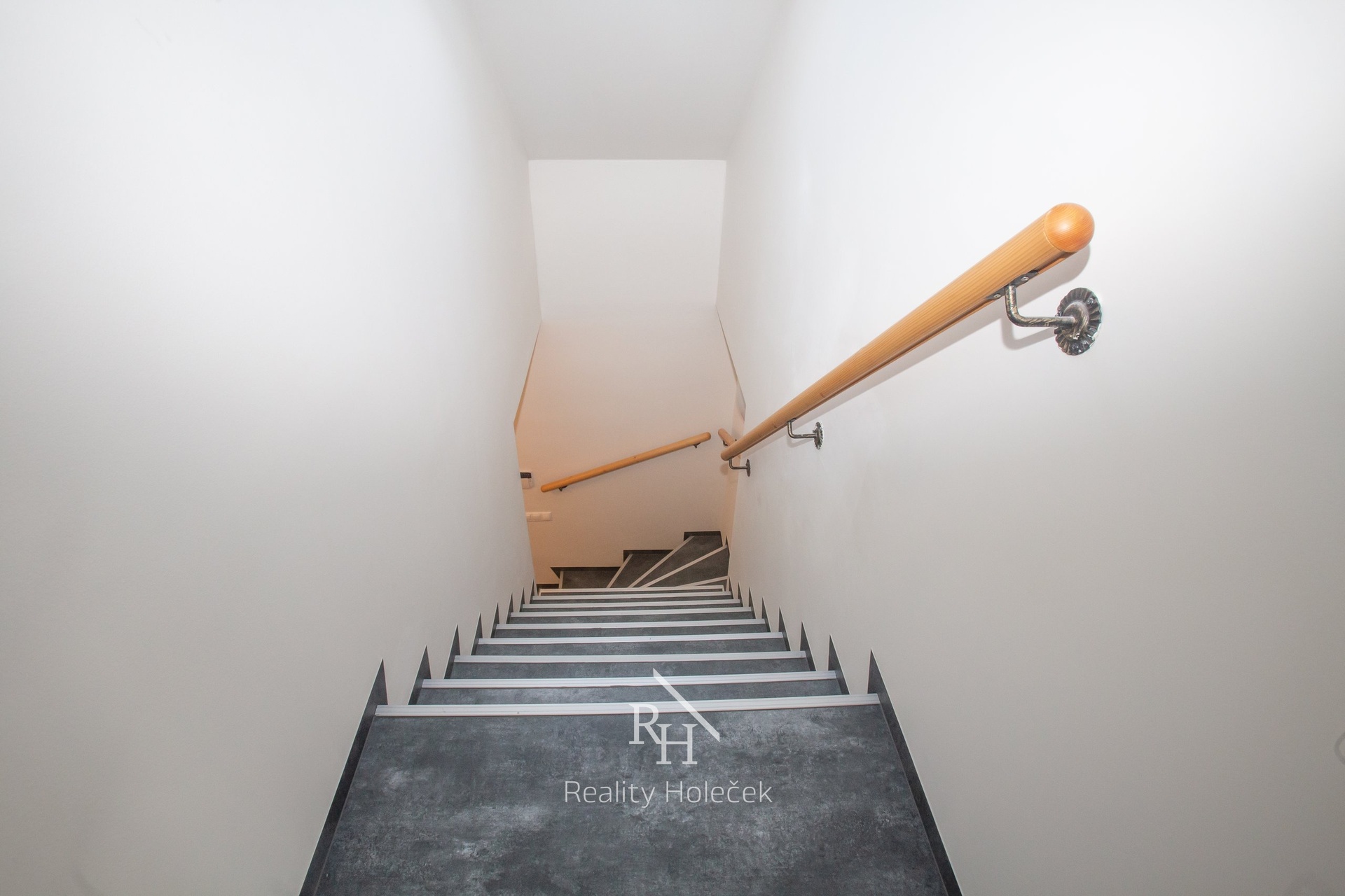Jediný svého druhu, tak by se dal nazvat tento dům v Kladně Rozdělově v blízkosti lesa. Jiný podobný dům momentálně v nabídce na Kladně nenajdete. Tato nemovitost Vám poskytne na pozemku o velikosti 822m2 dostatek prostoru a soukromí. První podlaží o dispozici 4+kk prošlo v roce 2019 nákladnou a zdařilou rekonstrukcí. Prostornému obývacímu pokoji spojenému s kuchyní (57m2) dominuje moderní kuchyňská linka se špičkovými spotřebiči od společnosti Gorenje, s pracovní deskou z umělého kamene od společnosti Samsung a lednicí taktéž od Samsungu. Během zimních dní si zde můžete přitopit ve zcela nových krbových kamnech, které stále čekají na svůj první podpal. Dále zde nalezneme větší z ložnic (23m2), momentálně využívanou jako posilovnu. Dvě menší ložnice, každá o rozměru 13m2. Koupelna (8m2) se sprchovým koutem a vanou poskytne dostatek prostoru a pohodlí. K nadstandardu patří dubové dřevěné podlahy s jemnými pozlacenými třpytkami. Naprosto Vás okouzlí moderní interiérové dveře se skrytými zárubněmi od společnosti B-doors-invisidoors. Ve druhém podlaží na Vás čeká prostorný pokoj o rozměru 46m2 s koupelnou, toaletou a přípravou na menší kuchyňku. Dům je tak možné snadno využít jako dvougenerační nebo sem přesunout posilovnu z přízemí.